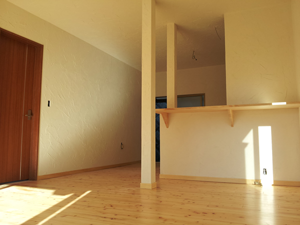 施工のポイント:2年くらい前に土地だけ購入され工務店を探していたN様でした。N様は当時、私の娘の担任の先生で家庭訪問のとき我が家のつくりを見て気に入っていただき新築工事をさせていただきました。このような出会い方は非常にうれしく、仕事冥利に尽きる思いです。仕様はこだわりの自然素材住宅です。外壁、屋根はメンテナンスの良いガルバリウムで統一しました。施工のポイントは10年~15年後に極力メンテナンスを減らすためとお家に優しい軽い材料で仕上げました。ダイニングキッチンは、奥様のご要望でオリジナルキッチン作りです。お料理が大好きで要望どおりの規格品のキッチンがありませんでした。コストの事も考え比較的安価で綺麗に仕上がる材料を選んで造作しました。また、光熱費節約の為オール電化にしました。4人家族なので460リットルのエコキュートを設置しました。
