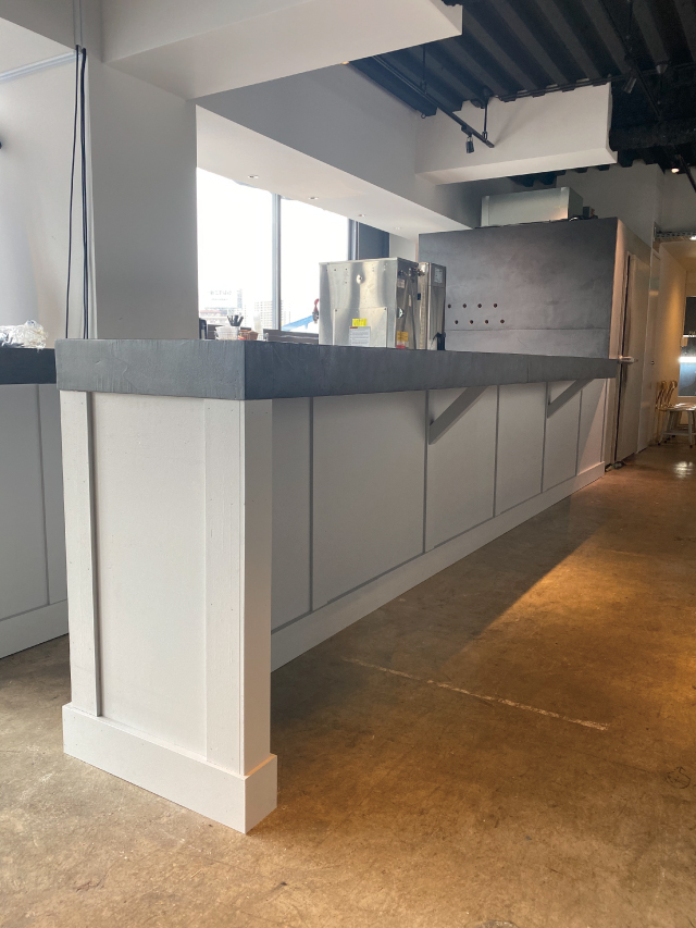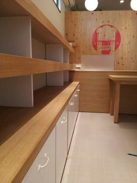 施工のポイント:およそ3年半ほど前にホウトーベーカリー浦賀店を工事させていただきました。今回は新ブランドの立ち上げということで県立大学駅店の店舗改修工事のご依頼をいただきました。横須賀の地元野菜を取り入れたパンを中心に、シェフこだわりのパンを提供されています。とてもおいしいのでパン好きな方は是非チェックしてみてください!