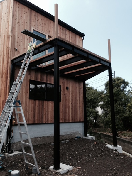 2021年8月施工 三浦郡葉山町長柄O様邸 (鉄骨ウッドデッキ工事)