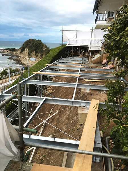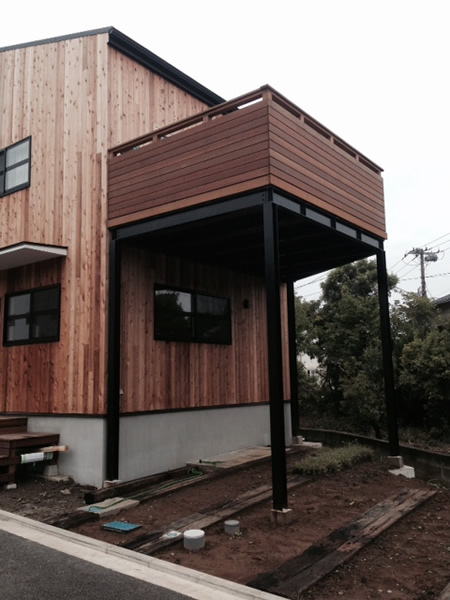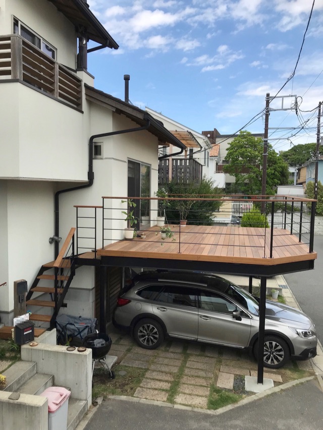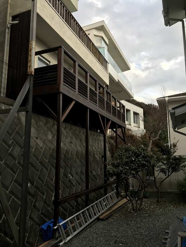 2018年5月施工 三浦郡葉山町一色S様邸 (鉄骨デッキ、ウッドデッキ、サーフボードラック工事)