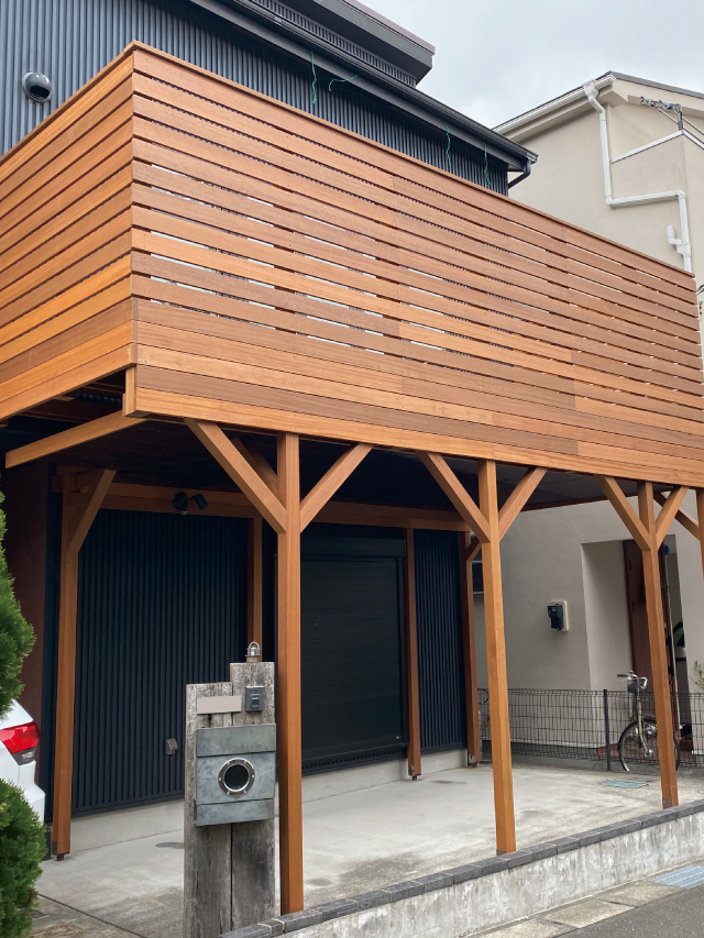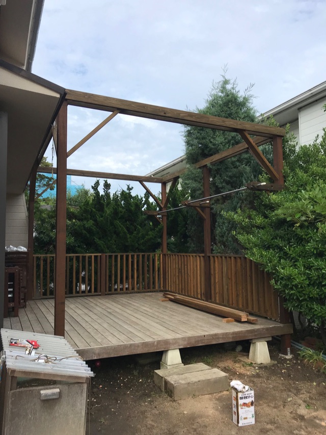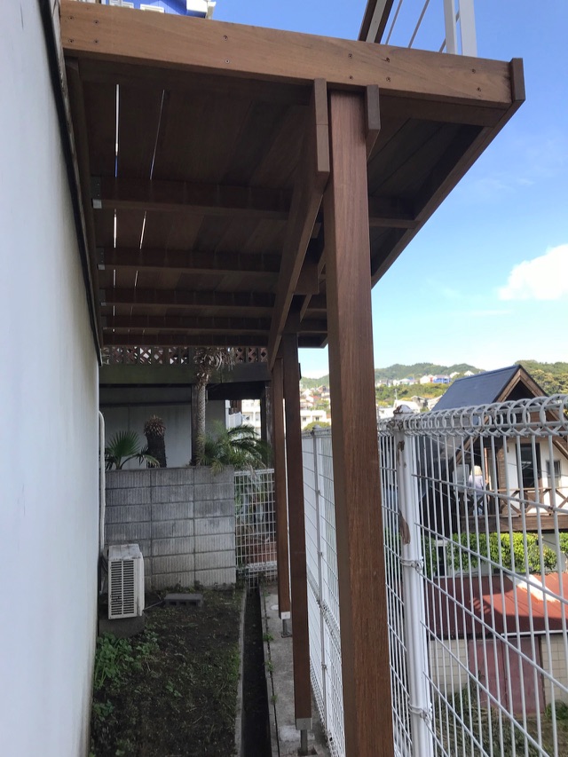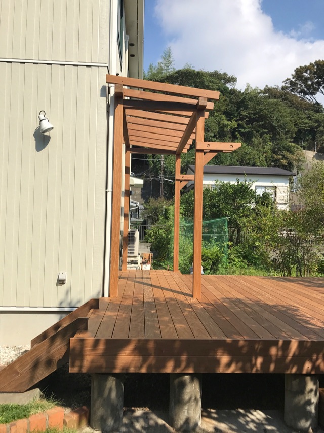 2020年7月施工 横須賀市長沢O様邸 (ウッドデッキ・パーゴラ屋根工事)