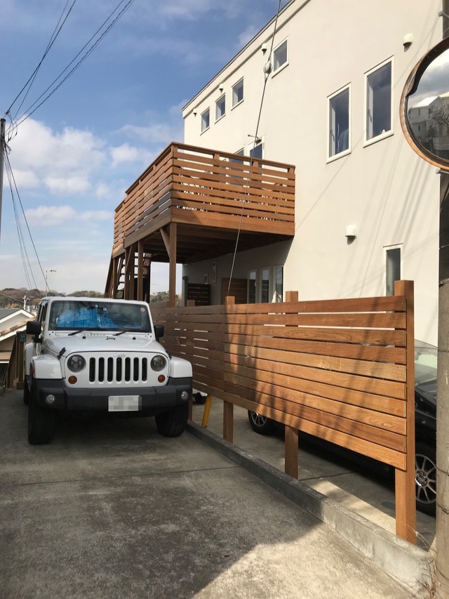 2018年1月施工 鎌倉市腰越K様邸 (ウッドデッキ・ウッドフェンス・サーフボードラック工事)