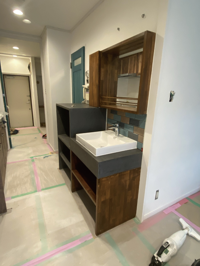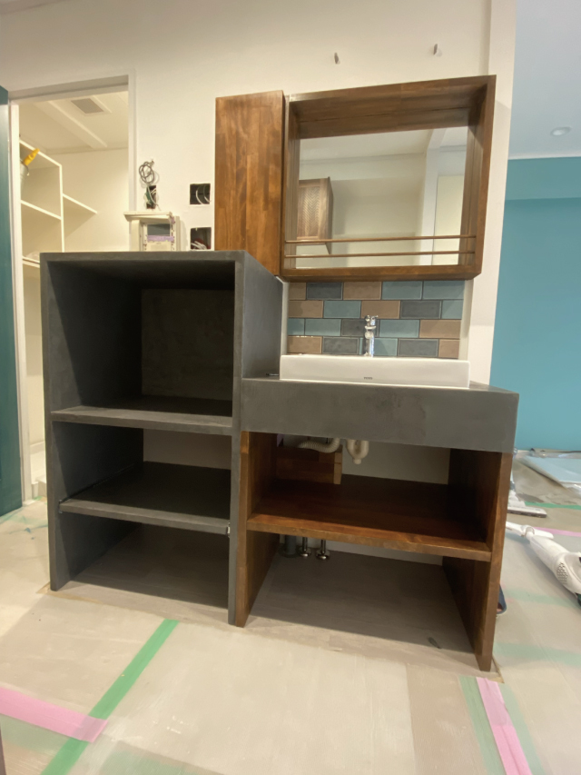 2020年6月施工 鎌倉市二階堂S様邸 (モールテックス・造作洗面カウンター収納工事)